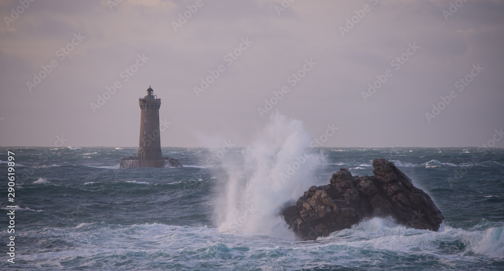 Tempete Phare Du Four Presqu Ile Saint Laurent Porspoder Finistere Bretagne France Stock Foto Adobe Stock